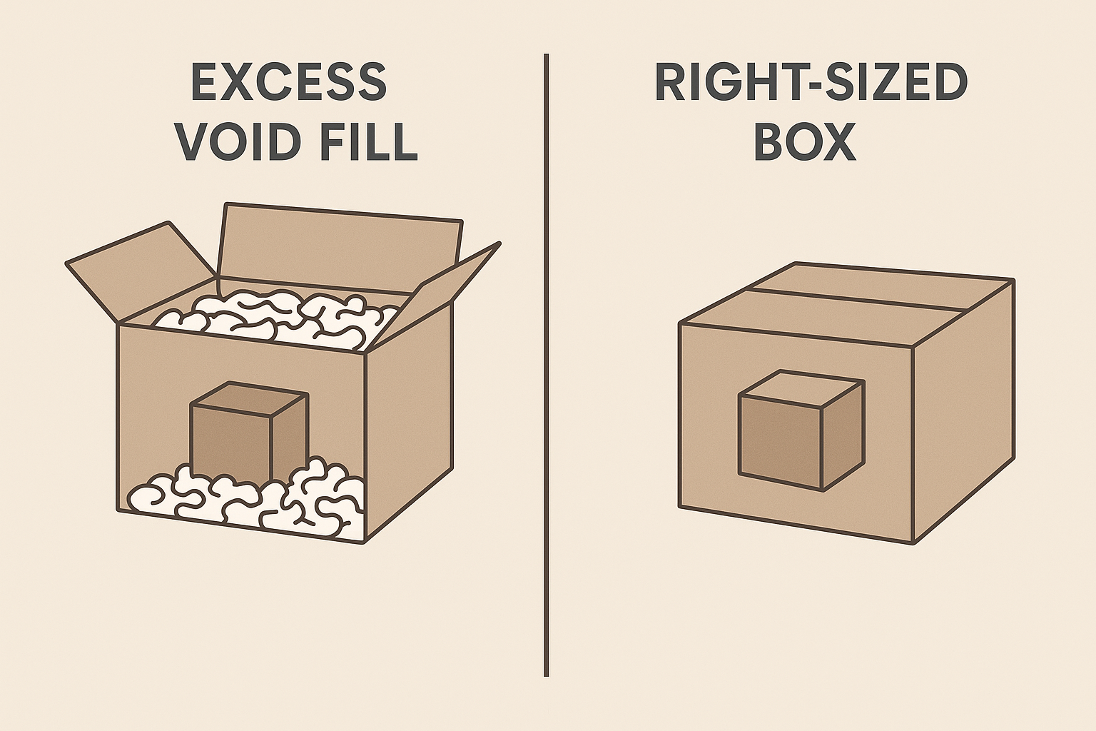 As a rule of thumb, there should be about an inch between the item and void space, perhaps less, so be mindful when choosing boxes.